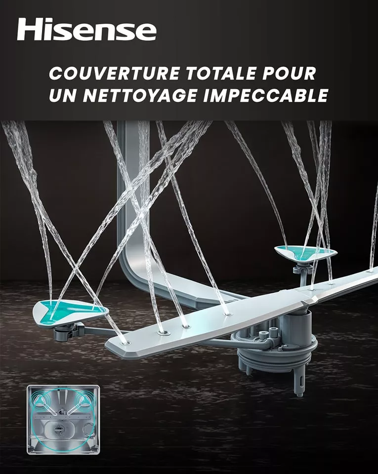 Lavage d’angle : Contrairement aux lave-vaisselles traditionnels, le Hisense HS673C90BME assure une couverture complète grâce à des jets d’eau spécialement orientés. Résultat ? Une vaisselle éclatante, même dans les zones difficiles d’accès.
